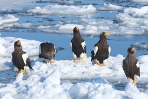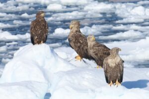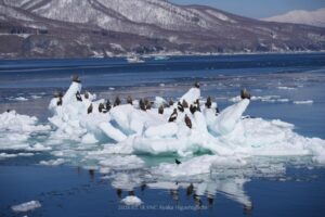 こちらの氷にはオジロワシがずらり。