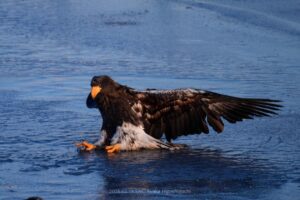 こちらのオオワシの若鳥は魚をとりに行ったままズコーーっと滑っていきました。