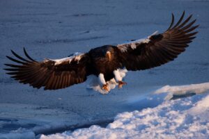 可愛い姿を見せてくれるオオワシですが、飛んでくる姿はとてもかっこいいです。