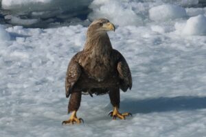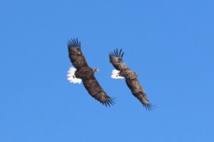 オジロワシの幼鳥はクチバシの先が黒っぽいです。幼鳥と言えど、どちらも顔つきはほぼ成鳥と変わりません。