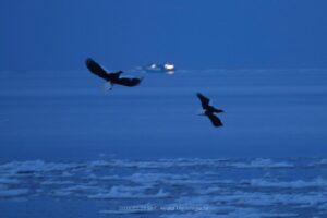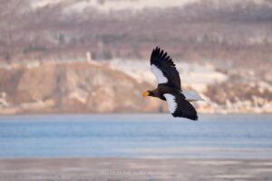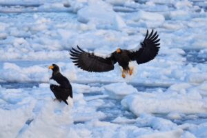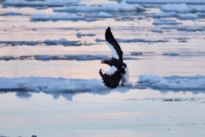 こちらのオジロワシは餌を巡って追いかけられていました。