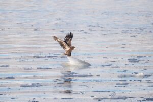 氷の表面も解けてツルツルしていましたが器用なワシ達は爪でしっかりつかんで留まっていました。