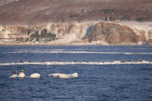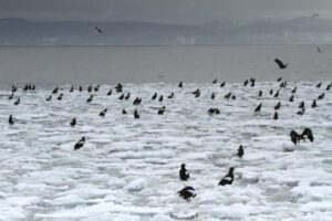 11:00便の観光コースでも無事に流氷帯に到達。到着時にはすでに多くのワシで賑わっておりました。