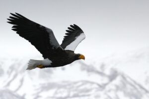 白黒はっきりとした色合いで、オジロワシよりも一回り大きいです。