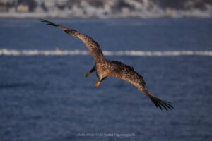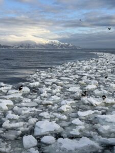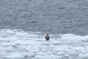 港内にはまだ多くの流氷が残っており、港周辺にも多くのワシの姿がありました。