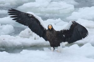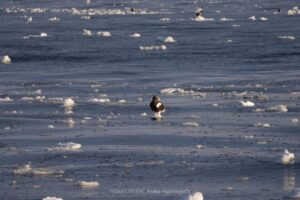 11:00便の観光コースでも無事に流氷帯に到達。到着時にはすでに多くのワシで賑わっておりました。