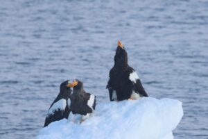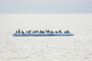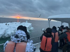 流氷帯を目指し船を進めますが流氷本体は遠くに行ってしまったようで、大きな流れ氷で撮影を行いました。