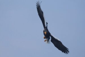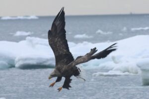 オジロワシは餌に向かって急降下、風を利用して飛ぶ姿は迫力がありますよ!