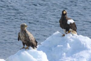 渡りが始まること頃はワシの数も少なくなりがちですが、沢山のワシが流れ氷の上に集まりました。