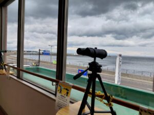 室内ですので本日の様に暴風、極寒の日でも快適に観察できます(笑)
