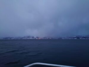 13時便は雪が降る中出航し、あまり景色が見られなかったと思ったら…